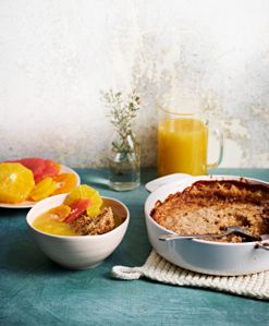 Spelttiuunipuuro ja appelsiini-vaniljakeitto