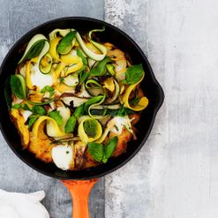 Pannupolenta ja kesäkurpitsaa
