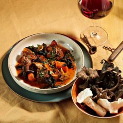 Syksyiset makkaraperunat eli lämmin sieni-perunasalaatti ja paistetut makkarat Glorian ruoka ja viini lisäsi reseptin