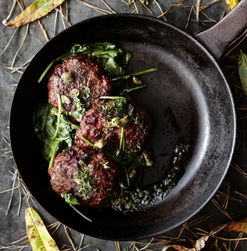 Hirvi-punajuuripihvit, kaprisvoita ja pinaattia