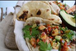 Pannuleivät lime-lohella ja papaija-avokadosalsalla