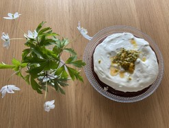Juhlava mansikkajuustokakku raparperi-toscapohjalla