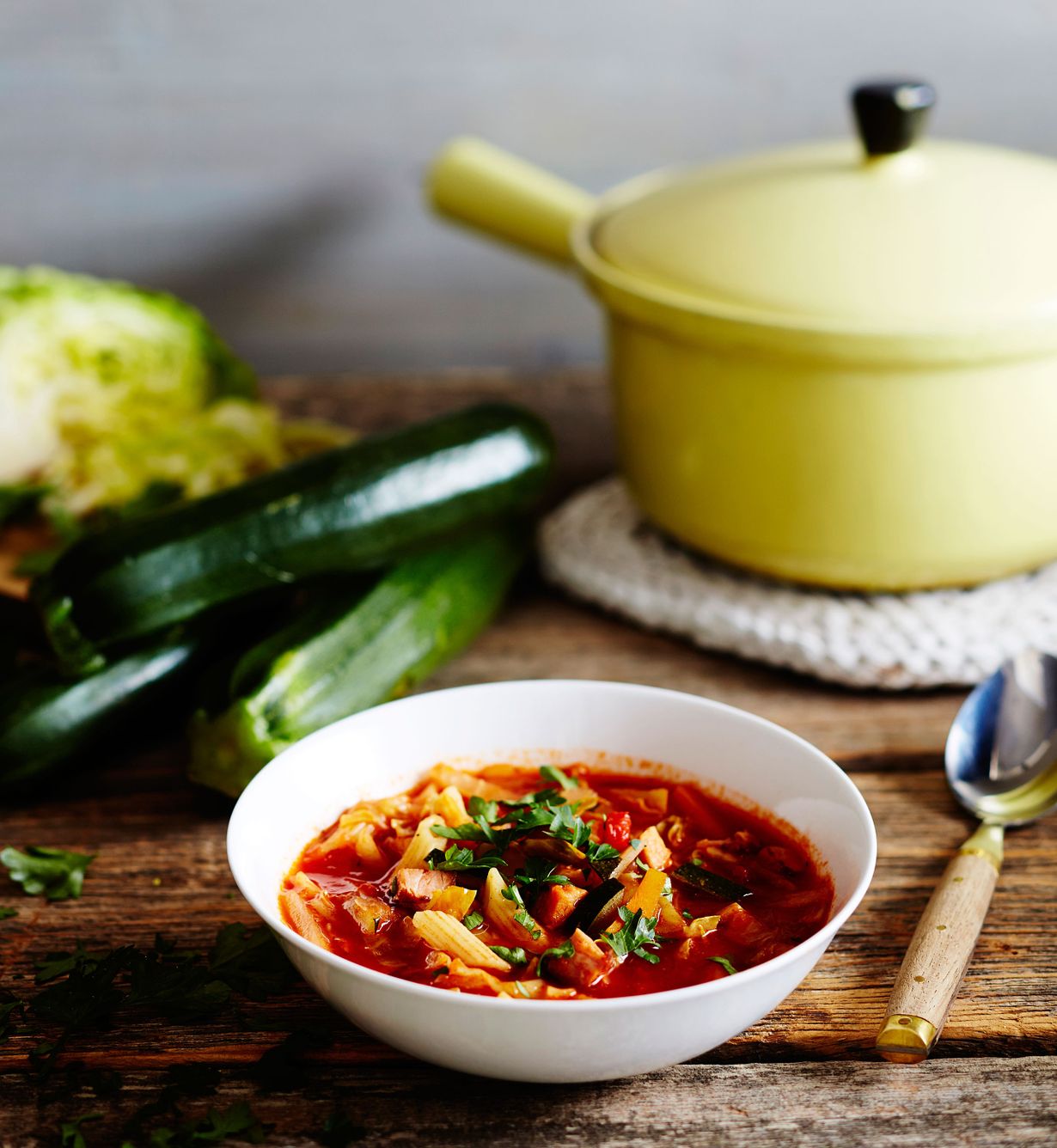 Klassisessa minestronekeitossa maistuvat mehevät syyskasvikset ja palviliha.