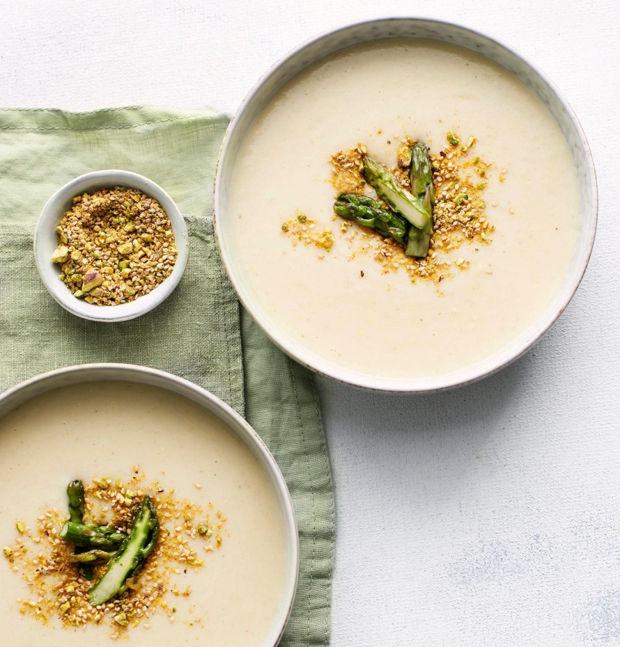 Tämän keiton kohdalla ei tarvitse päättää, tykkääkö enemmän vihreästä vai valkoisesta parsasta. Soppaan tulee molempia! Lisäksi keitto on helppo tehdä vegaanisena.