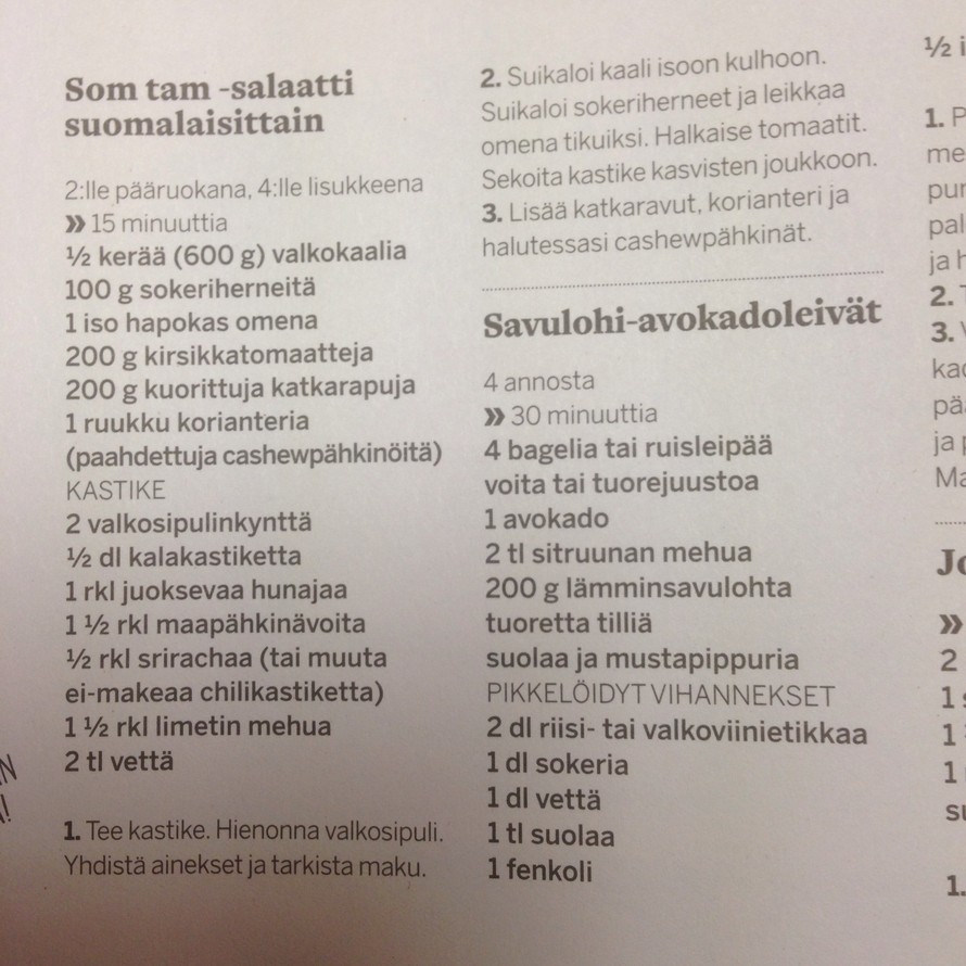 9:43 | 22.9.2014 Kiran som tam -salaatti Lisää omaan keittokirjaan Hanna Jensen_2 on lisännyt 9 reseptiä Sisältö jatkuu mainoksen alla Sisältö jatkuu mainoksen alla Kiran som tam -salaatti Lisää kokoelmaan Like 15 Ainesosat Vaiheet Tilaa Glorian ruoka & viini