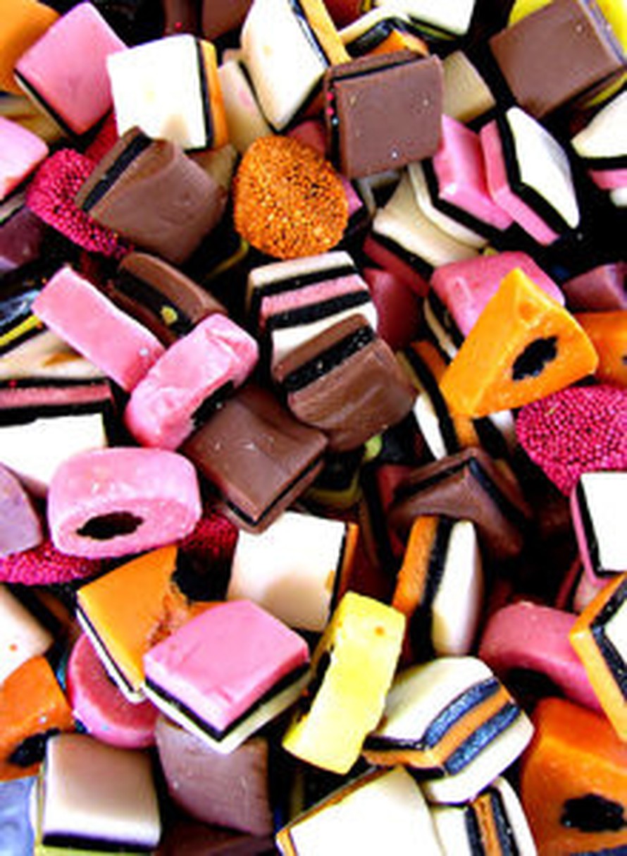 Englannin lakrtisi karkkeja+tomusokeria+lakritsikastiketta esim Pirkka