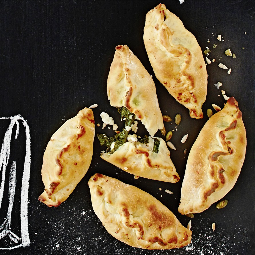 - Paista 250-asteisen uunin keskitasossa pelti kerrallaan 12–15 minuuttia tai kunnes calzonet ovat kypsiä.