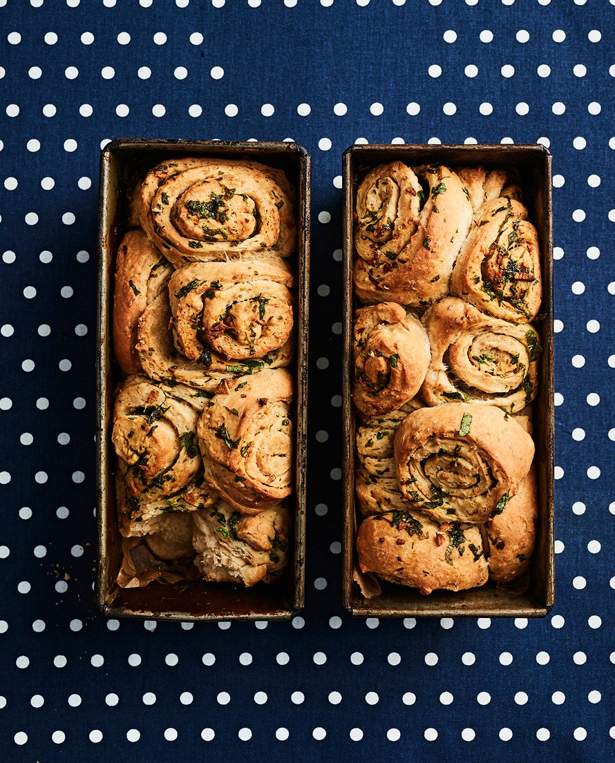 Tästä leivästä ei puutu makua: valkosipuli, parmesan-juusto ja lehtipersilja maustavat muhkean nyhtöleivän.