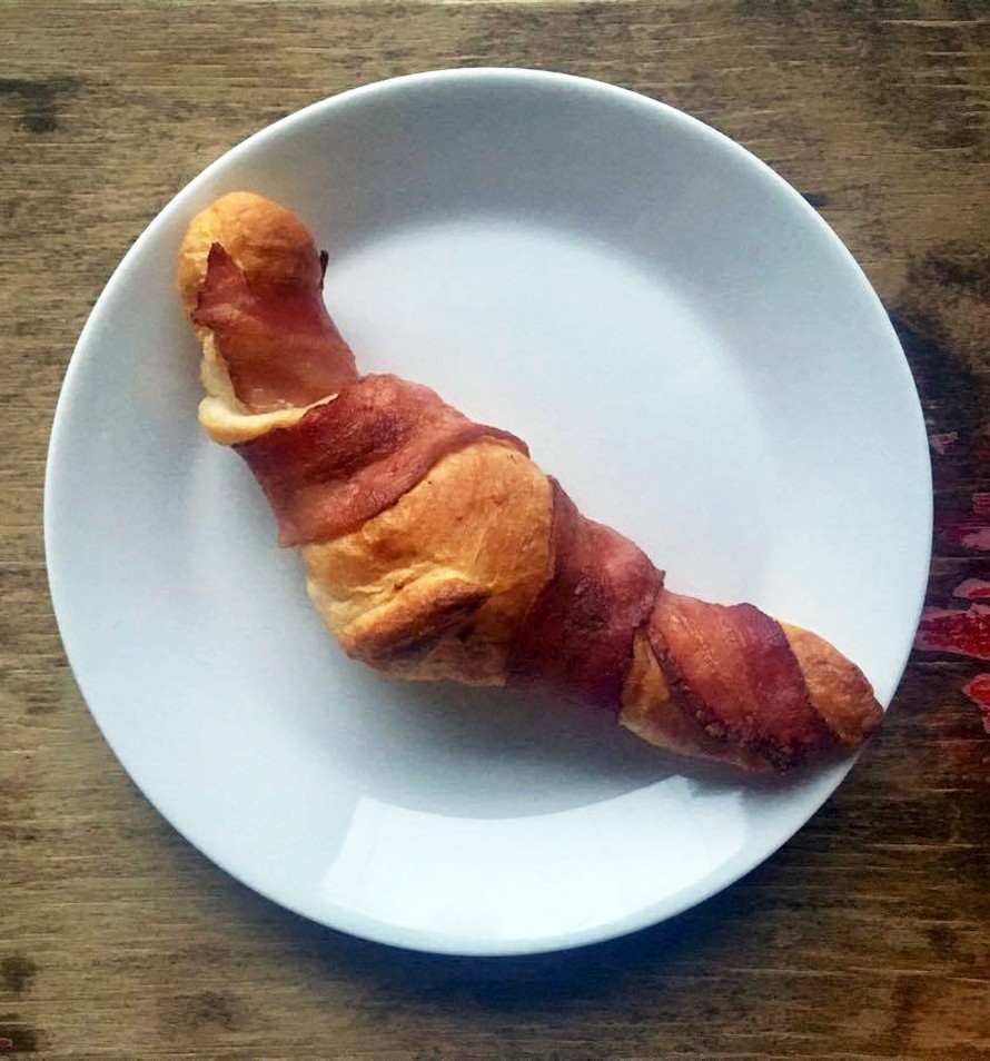 Pekoniin kääritty croissant