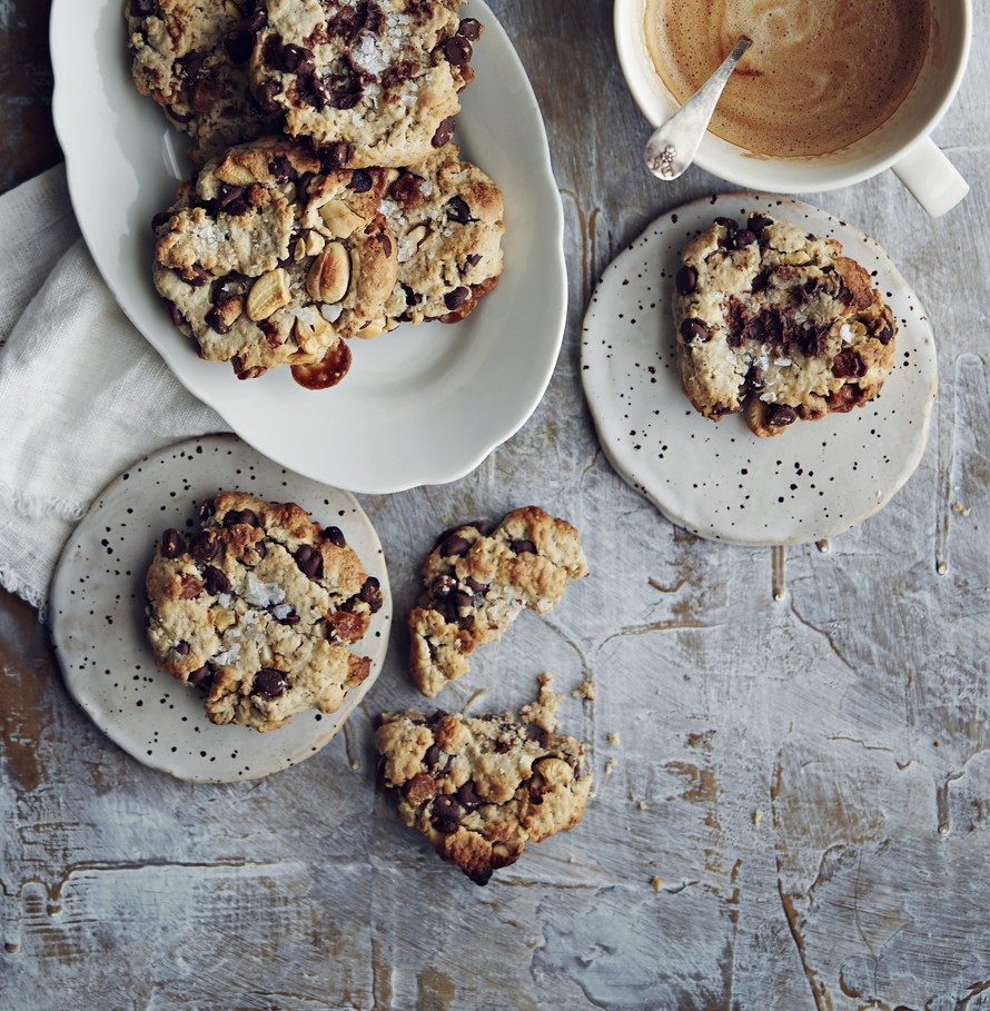 Valmiista piirakkataikinasta valmistuvat mehevät keksit sisältävät sekä suklaata, toffeeta että pähkinöitä. Viime silauksen ne saavat sormisuolasta.