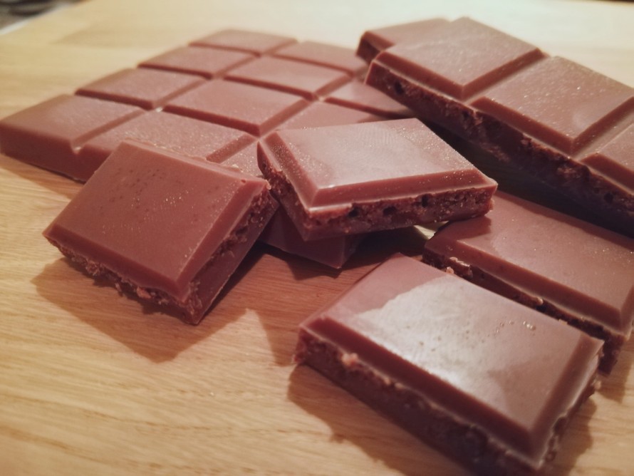 Sekoita suklaata lukuunottamatta kaikki aineet kattilassa ja keitä miedolla lämmöllä välillä sekoittaen 10-15 minuuttia. Kaada seos öljytylle leivinpaperille.
