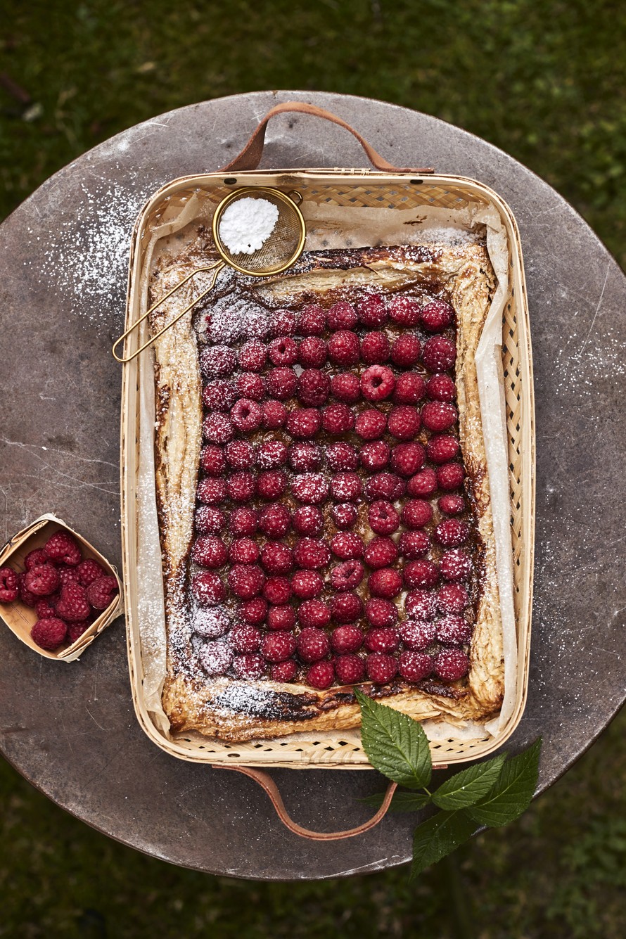 - Lado tuoreet vadelmat pinnalle. Siivilöi tomusokeria päälle.