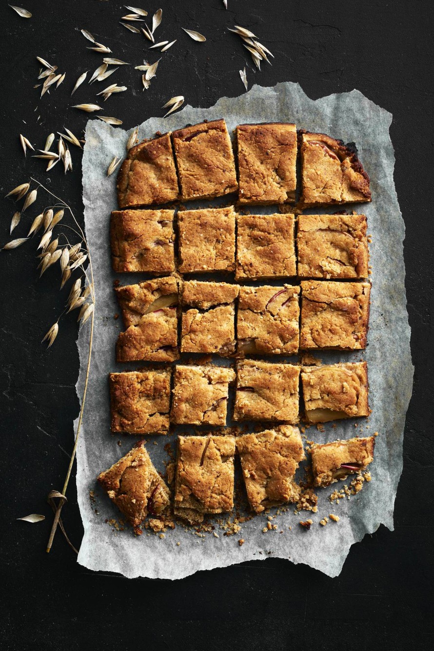 Kinuskisen makuiset kaura-omenapalat makeutetaan vaahterasiirapilla ja kuivahedelmillä.