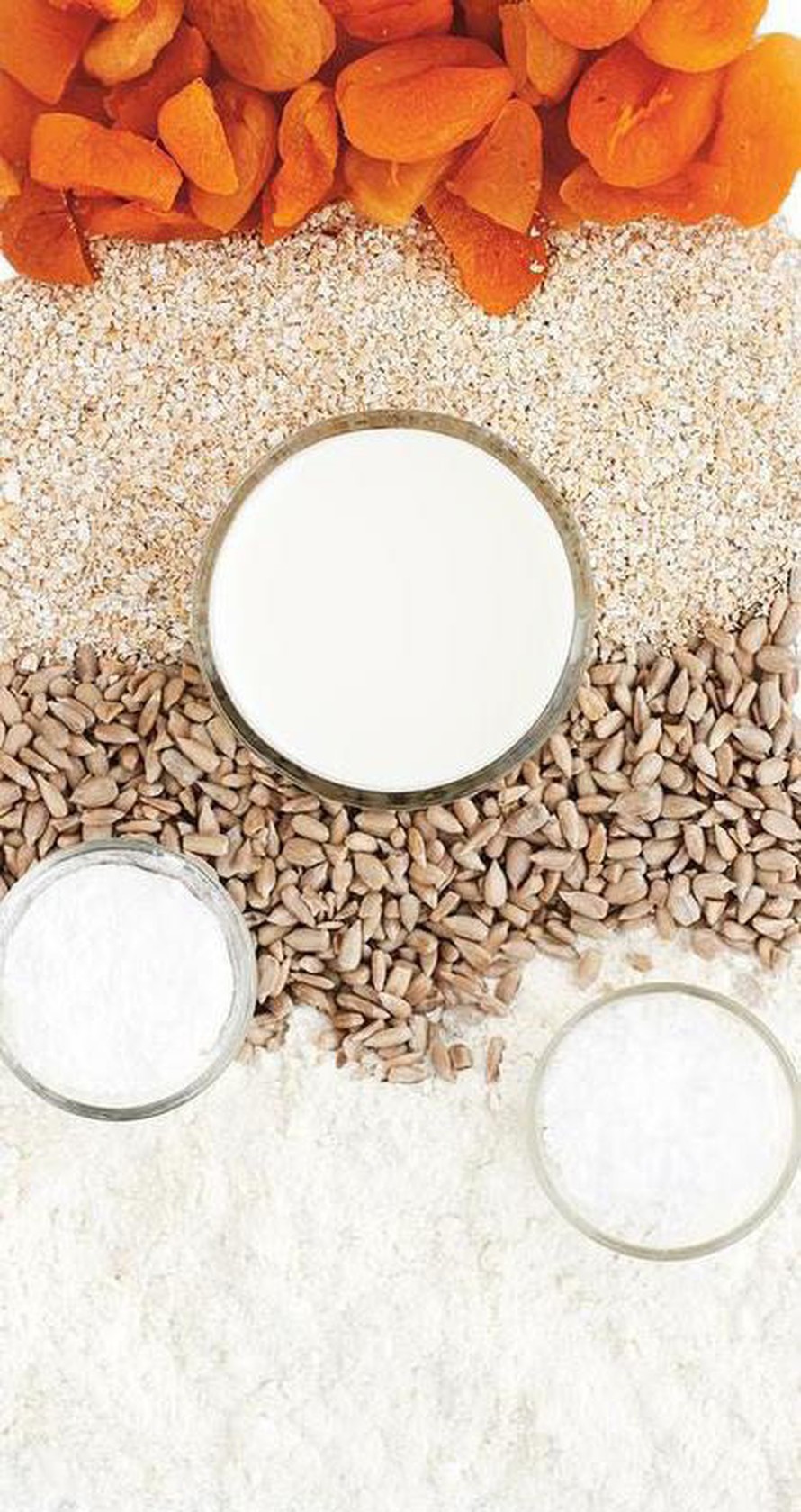 Lisää jauhot, leseet, siemenet, leivinjauhe ja suola. Sekoita joukkoon maito.