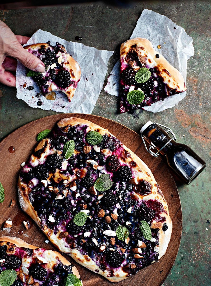 Tätä on pakko kokeilla! Makean pitsan ohuella pohjalla mustikat ja karhunvatukat pääsevät mahtavasti oikeuksiinsa.