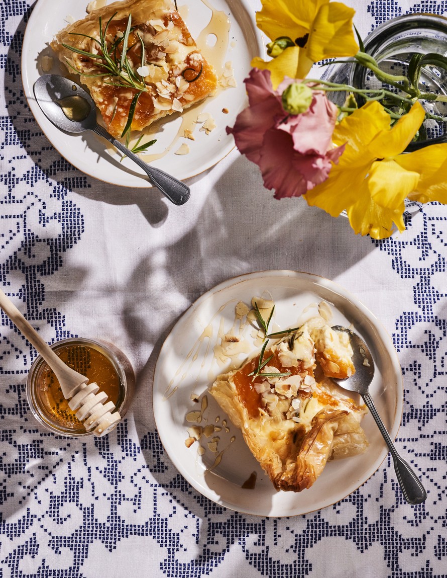 Tässä piiraassa maistuu hunaja ja rosmariini. Filotaikinan ohuet kerrokset luovat houkuttelevan rapeat kerrokset pohjaan. Piiras sopii loistavasti keväisen viikonlopun kahvipöytään.