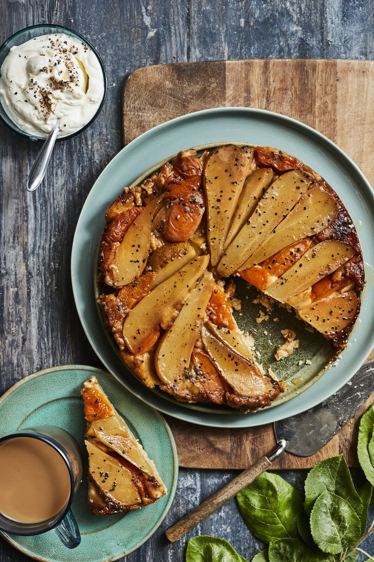 Tarte tatinin eli keikauskakun voi taikoa päärynöistä ja aprikooseista. Makoisa klassikko syntyy myös oman omenapuun hapokkaista omenoista.
