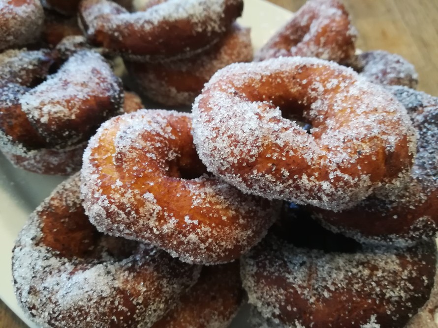 Kuumenna öljy korkeareunaisessa teräskattilassa tai padassa 170–180-asteiseksi. Tarkista öljyn lämpötila mittarilla tai vaalealla leipäpalalla. Öljy on sopivan kuumaa, kun leipäpala ruskistuu kauniisti minuutissa. Käytä munkkien käsittelyyn reikäkauhaa tai kahta lusikkaa. Kypsennä 3 munkkia kerrallaan öljyssä molemmin puolin kauniin ruskeiksi. Nosta munkit hetkeksi talouspaperin päälle valumaan ja kääntele ne lämpiminä sokerissa.