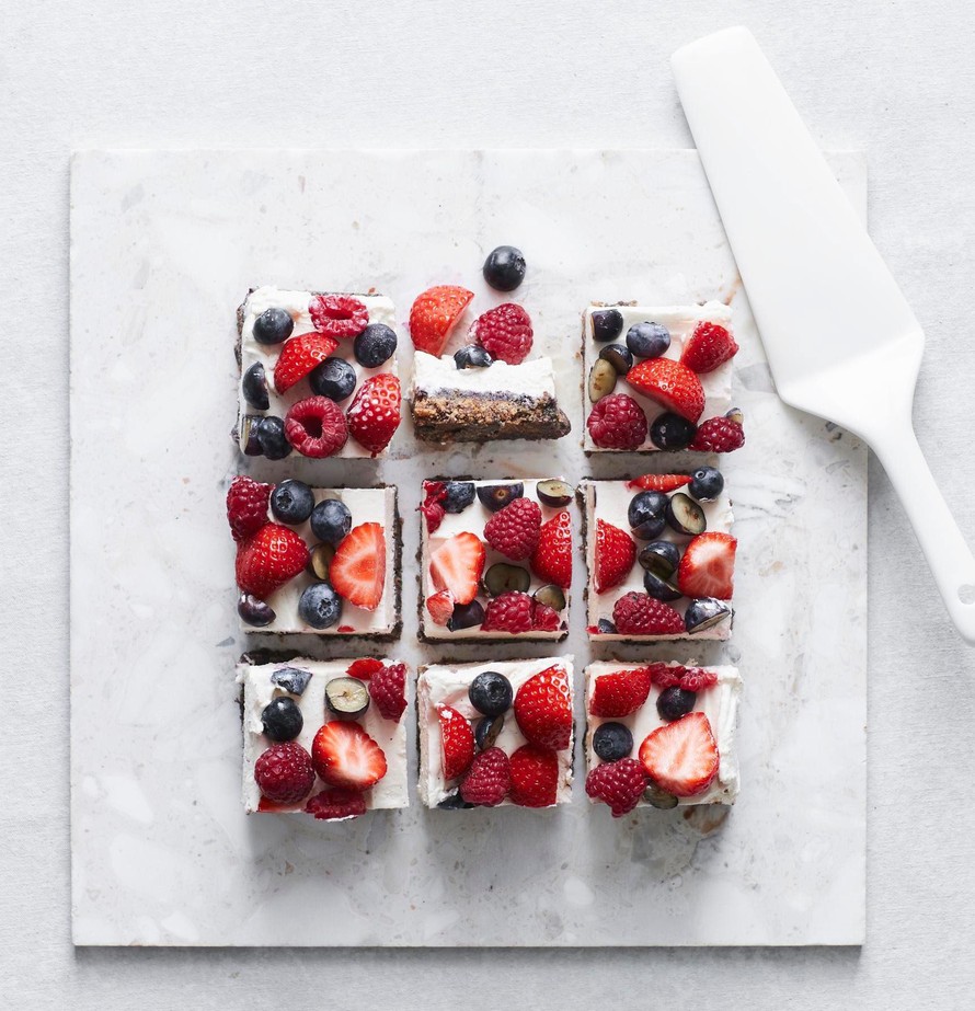 - Sekoita jugurtti ja mascarpone. Vispaa kerma paksuksi vaahdoksi. Sekoita kermavaahto, hunaja ja vaniljasokeri jugurttiseokseen, levitä se pohjan päälle ja laita vuoka pakastimeen noin 4 tunniksi. Kakku on parhaimmillaan juuri ja juuri jäätyneenä.