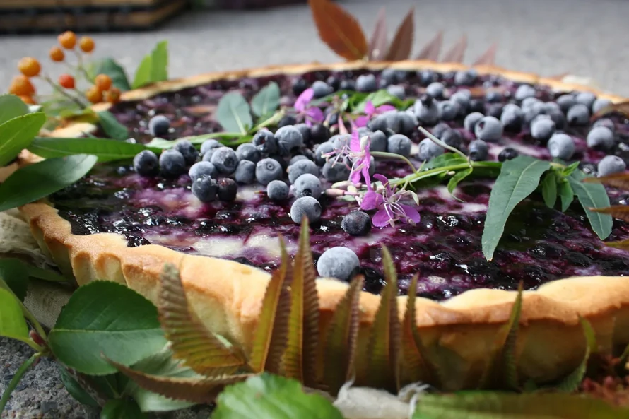 Ripottele mustikat piirakkapohjan päälle. (Jos käytät pakastemustikoita lisää 1 rkl perunajauhoja mustikoiden sekaan).