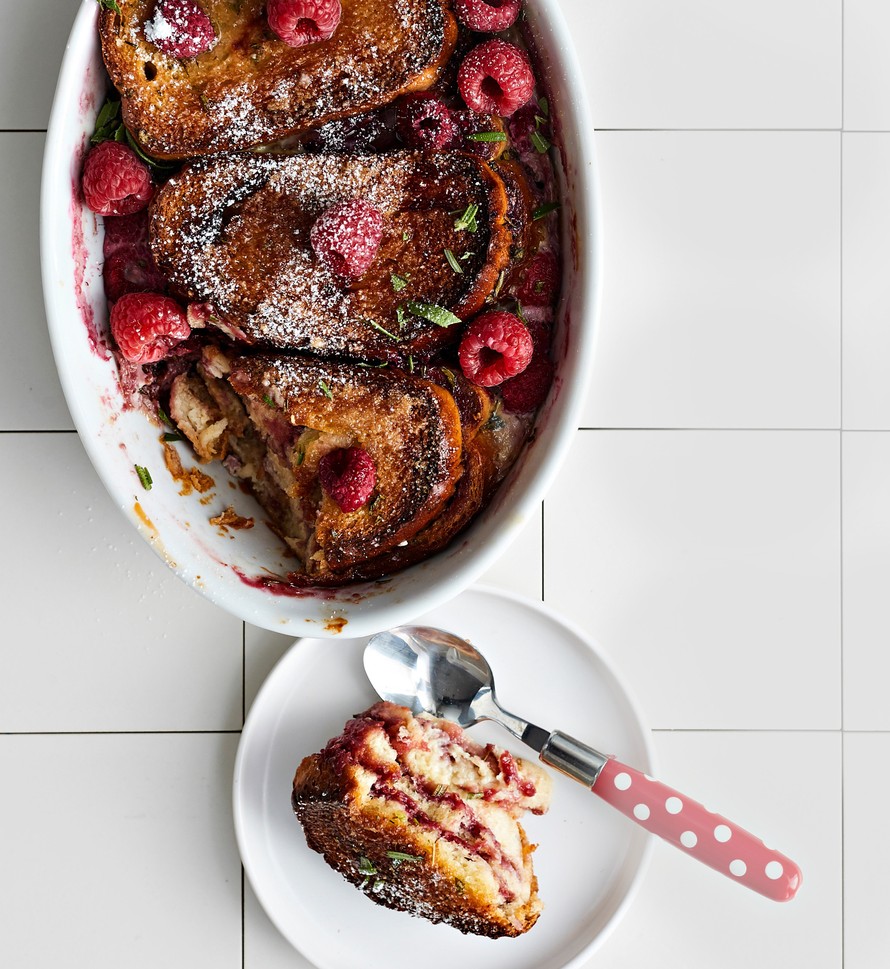 Rosmariinilla maustettu vadelma-pullavanukas