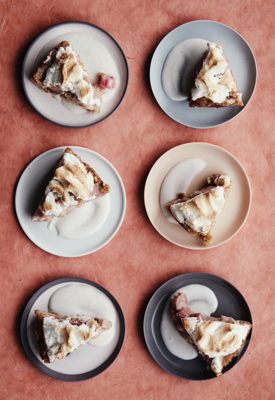 Rapea pohja, kirpeänmakeaa raparperitäytettä ja pehmeää marenkia. Ihana raparperihyvepiirakka maistuu täydelliseltä kookos-vaniljakastikkeen seurassa.