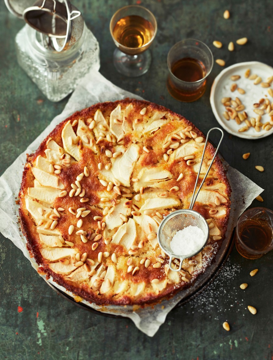 - Paahda pinjansiemeniä kuivassa kuumassa pannussa noin 1 minuutti. Ripottele siemenet kakun päälle.