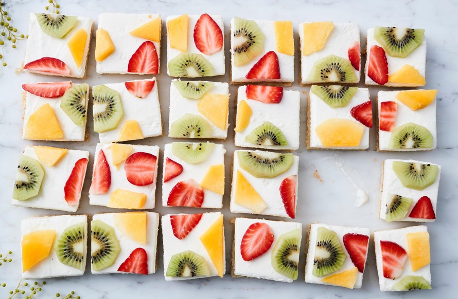 Juhlien helpoin peltikakku tulee tässä! Kauniit ricottaleivokset lainaavat leikkisän ulkonäkönsä japanilaisilta hedelmävoikkareilta eli fruit sandoilta.