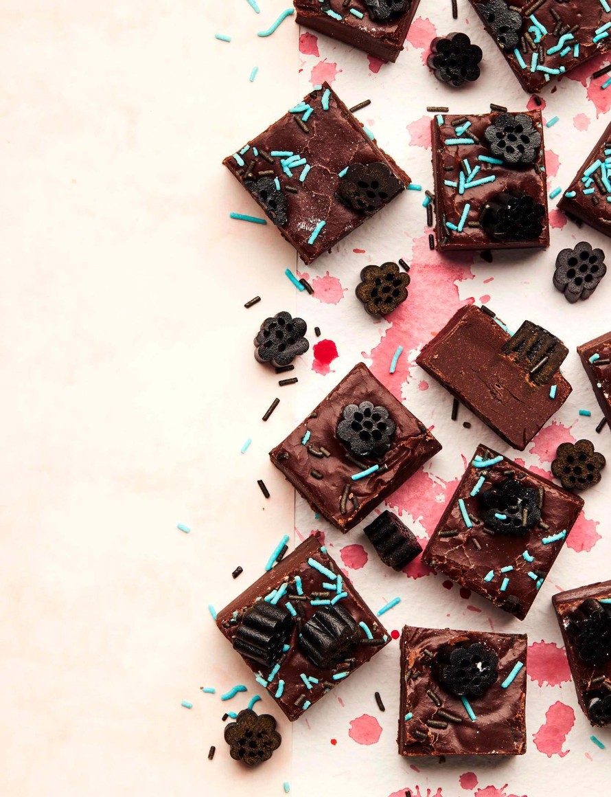 Jähmetyttyään jääkaapissa muutaman tunnin, fudge saa päälleen mokkapaloista tutun kuorrutuksen. Koristeeksi sopivat pehmeät lakupalat ja strösselit. Tämä herkku taltuttaa makeanhimon hetkessä!