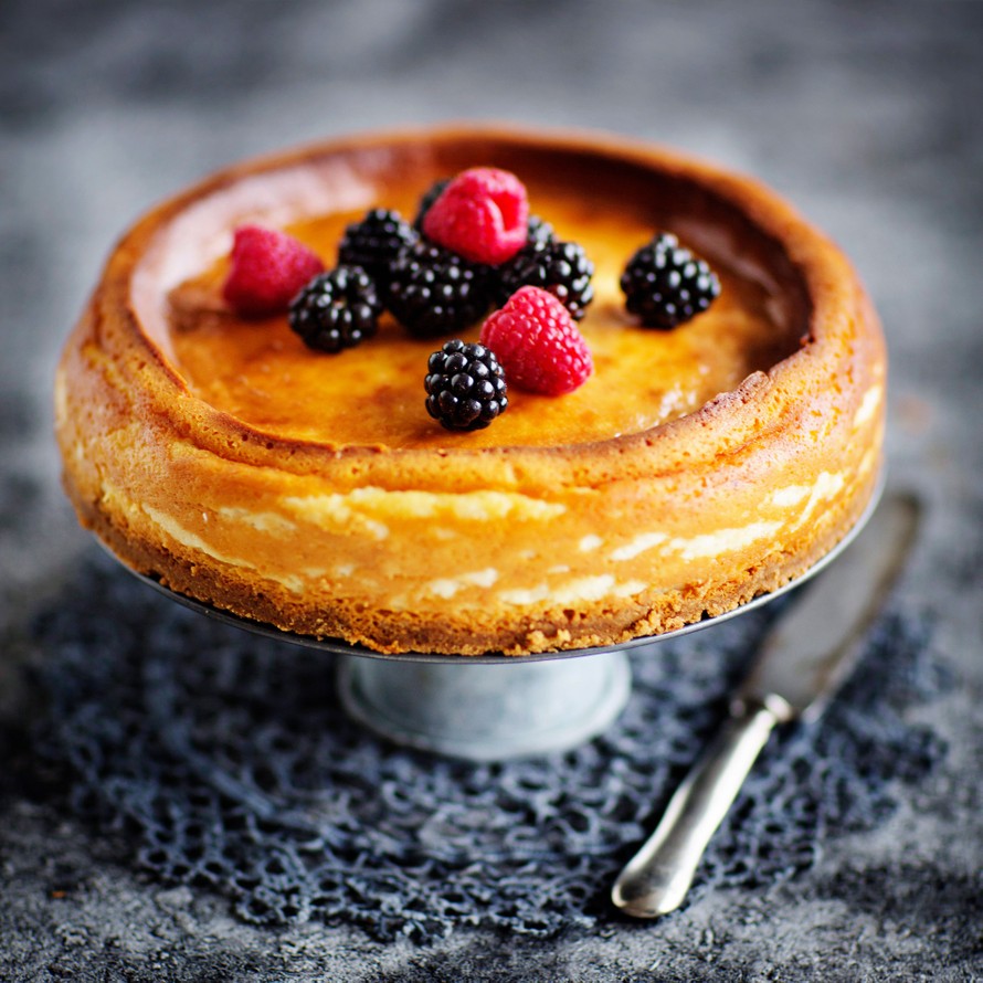 Tämä ei ole pikakakku: ensin juustokakku paistetaan uunissa ja sitten se saa vetäytyä vielä yön yli jääkaapissa. Odotus kuitenkin palkitaan, sillä lopputulos on ihanan mehevä ja tuhti!