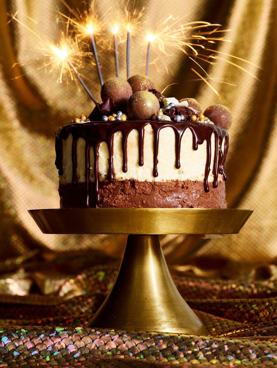 Tyylikäs viimeistely syntyy suklaakuorrutuksesta, jota valutetaan varovasti kakun reunoille. Koristeeksi kakun päälle sopivat erilaiset suklaat ja leivontahyllyltä löytyvät kimalteet.