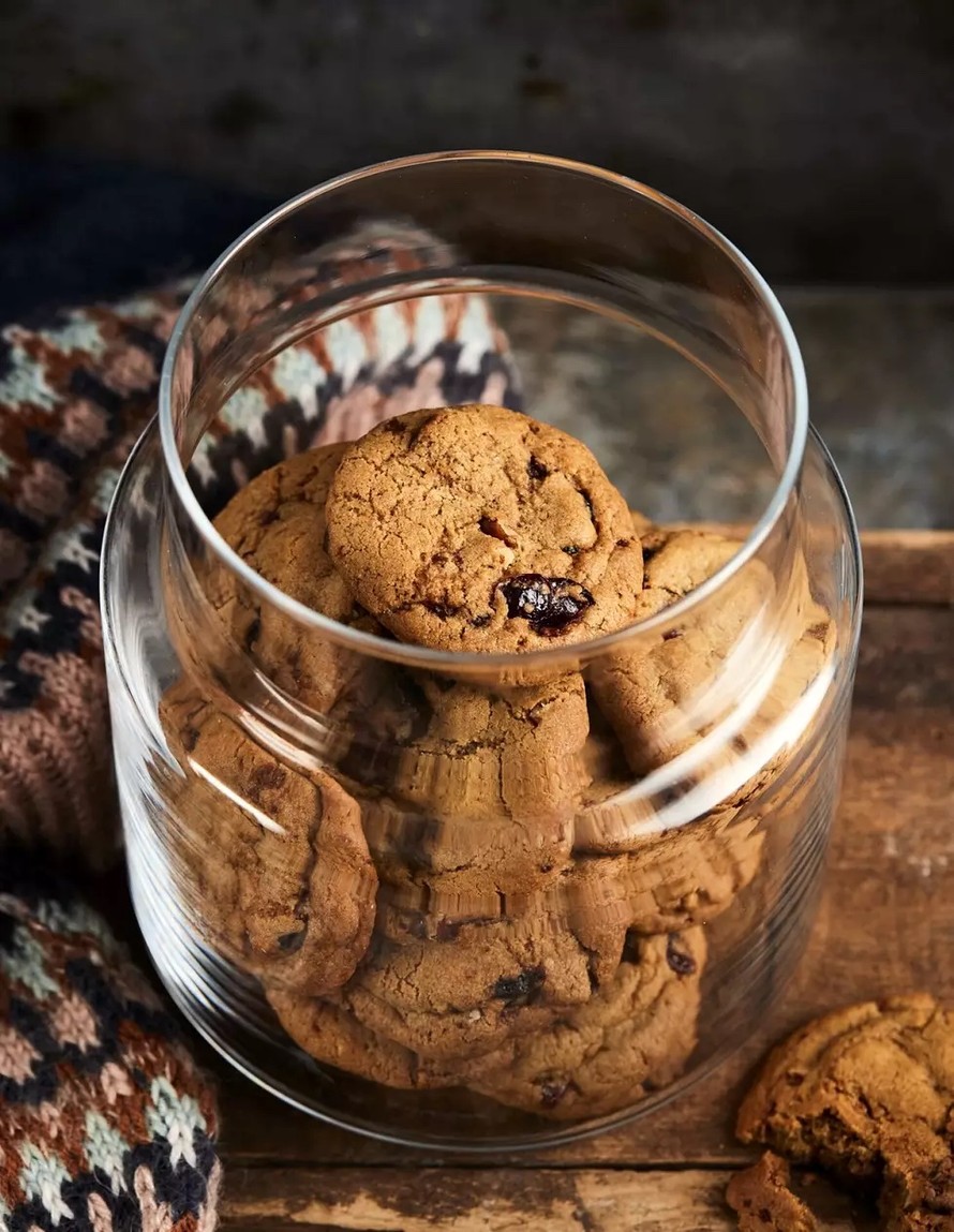 Pekaani-karpalokeksien taikina pyöritellään palloiksi ja jäähdytetään hyvin ennen paistoa. Kylmät taikinapallot kypsyvät uunissa paksuiksi ja keskeltä pehmeän sitkeiksi kekseiksi.