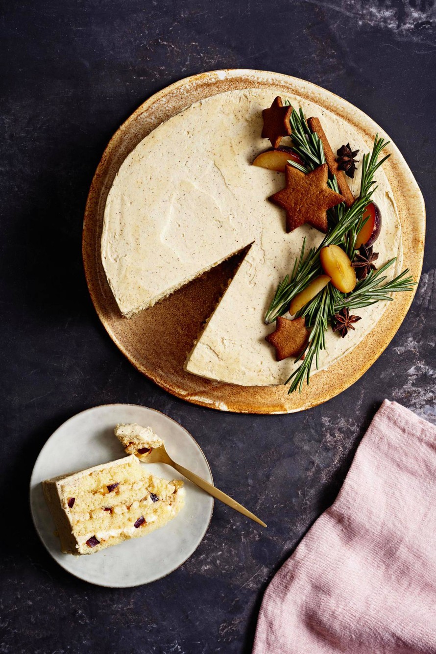- Koristele kakku rosmariininoksilla, piparkakuilla, kokonaisilla mausteilla ja luumuilla.