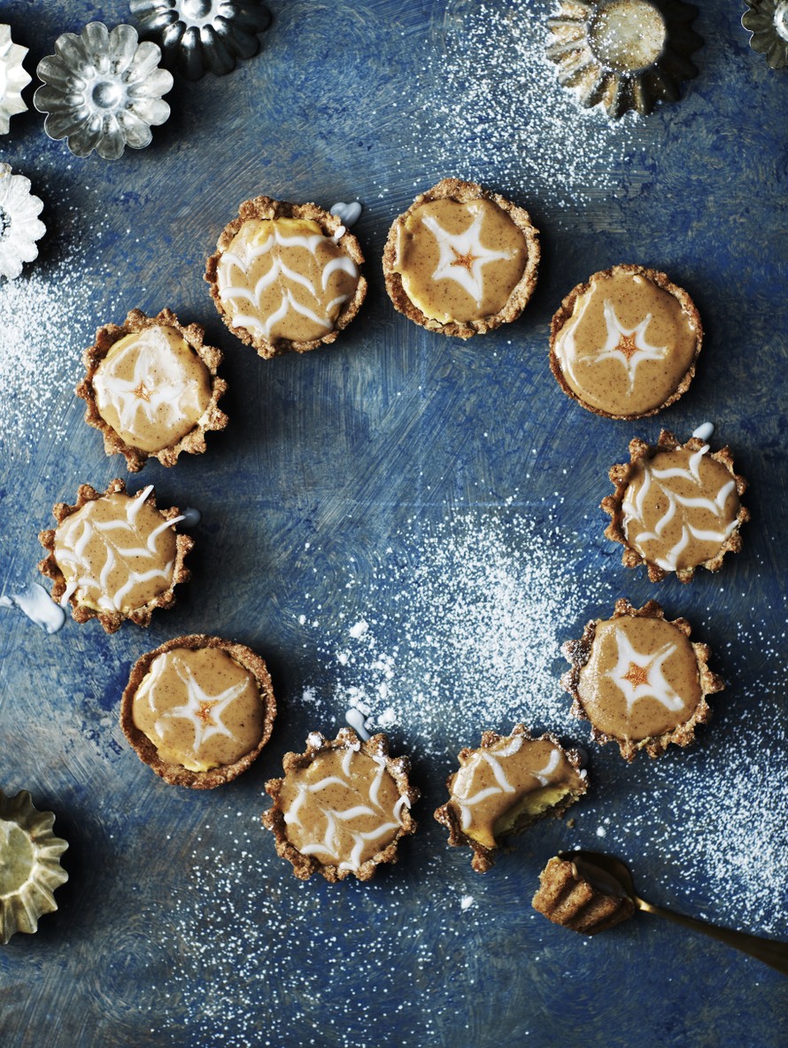 - Mittaa tomusokeri kulhoon. Sekoita joukkoon mausteet ja siirappi. Lisää kylmää vettä tippa kerrallaan, kunnes kuorrutus on notkeaa mutta vielä paksua. Levitä kuorrute leivosten pinnalle.