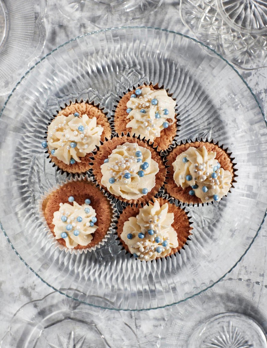 - Pursota jäähtyneiden leivosten päälle vaniljatäytettä ja koristele leivokset nonparelleilla.