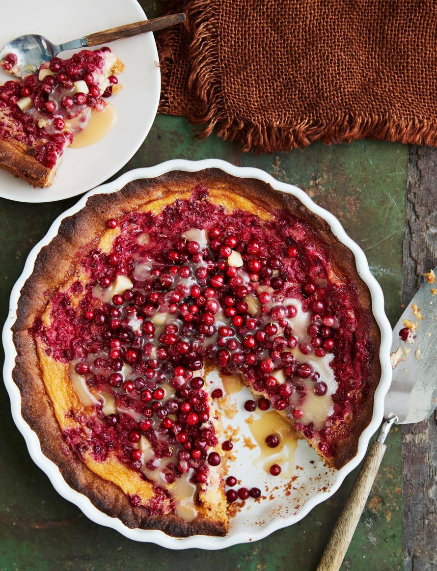 Puolukka-kinuskipiirakka