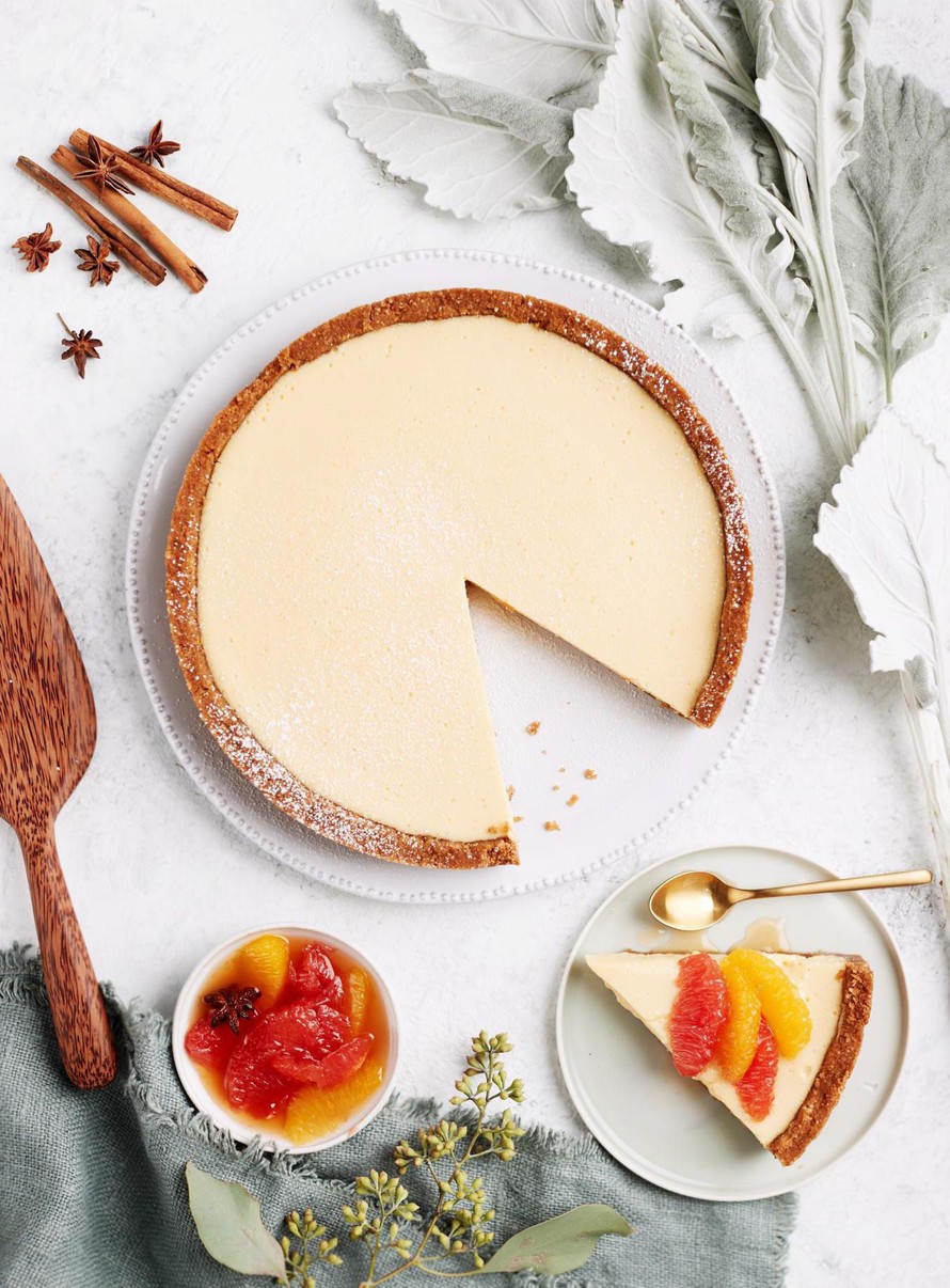 Leikkaa verigreipit ja appelsiinit kuorettomiksi lohkoiksi. Kääntele sitrusohkot kanelisiirapissa ja tarjoa piirakan kanssa.