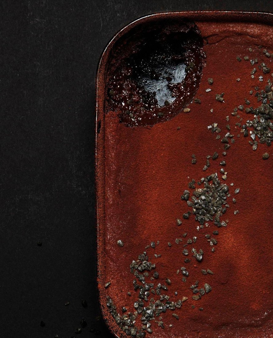 Kypsennä uunissa noin 15 minuuttia. Brownie saa jäädä kosteaksi. Tupsauta päälle kaakaojauhetta ja ripottele turkinpippurirouhetta.