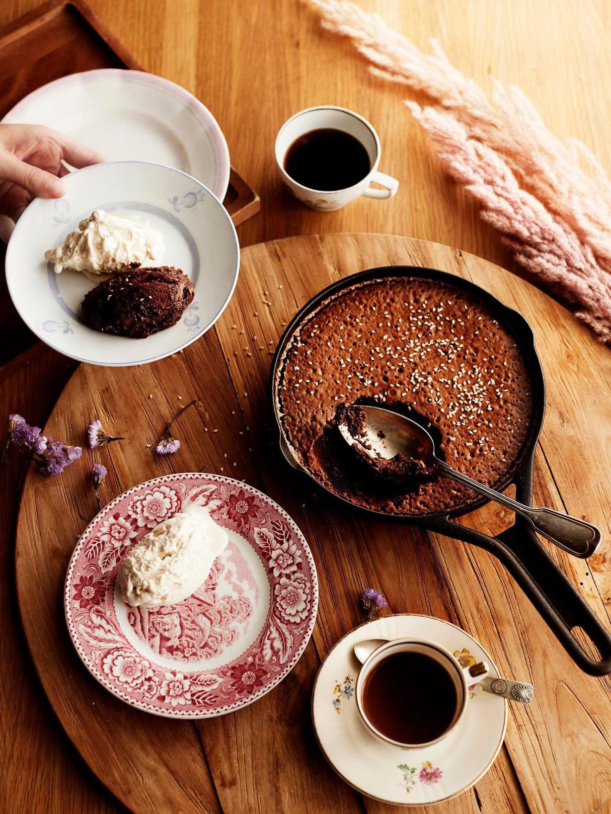 Tämä tumma ja täyteläinen kakku on saanut inspiraationsa OX-ravintolan Markus Hurskaisen tahini-suklaakakusta. Valurautapannussa kakun reunat karamellisoituvat kauniisti ja sisus jää ihanan kosteaksi.