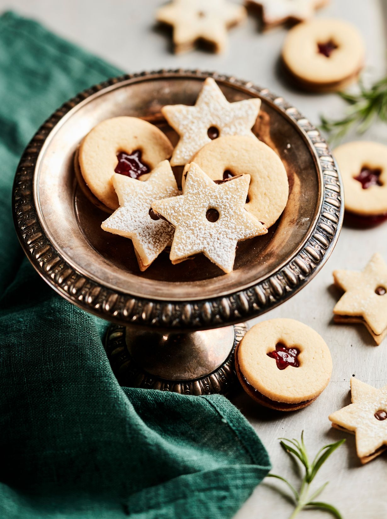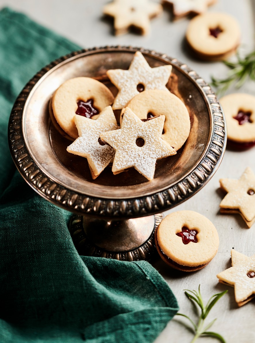 Näiden tähtipikkuleipien herkullisuuden salaisuus on itse valmistettu täyte. Puolet kekseistä täytetään puolukka-kanelimarmeladilla ja puolet rosmariinisuklaalla.