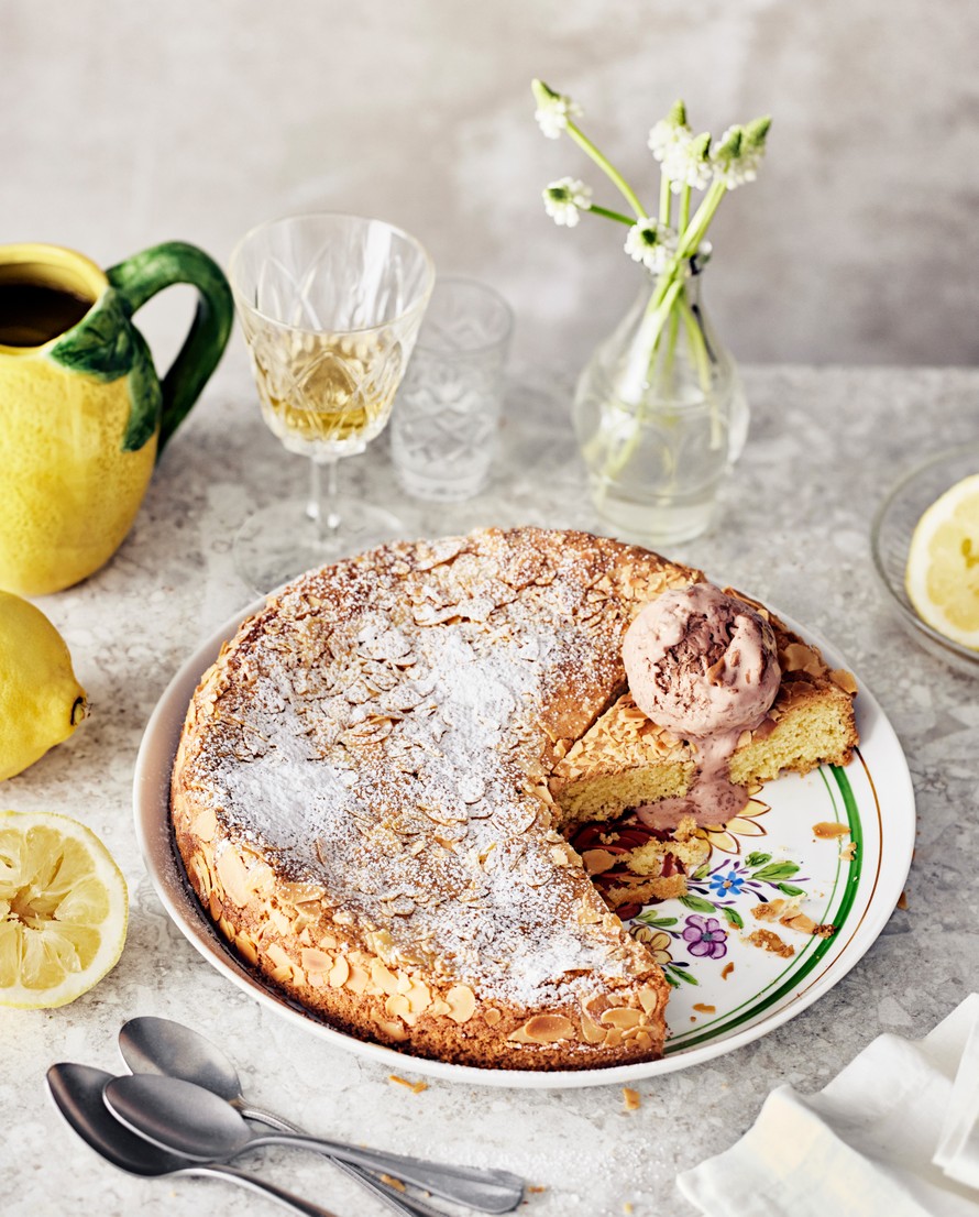 Torta mantovana on kuivakakun ja tortun sitruunainen rakkauslapsi. Pyöräytä litteän tortun kaveriksi jäätelöpalloja ja kaada lasiin jälkiruokaviiniä.