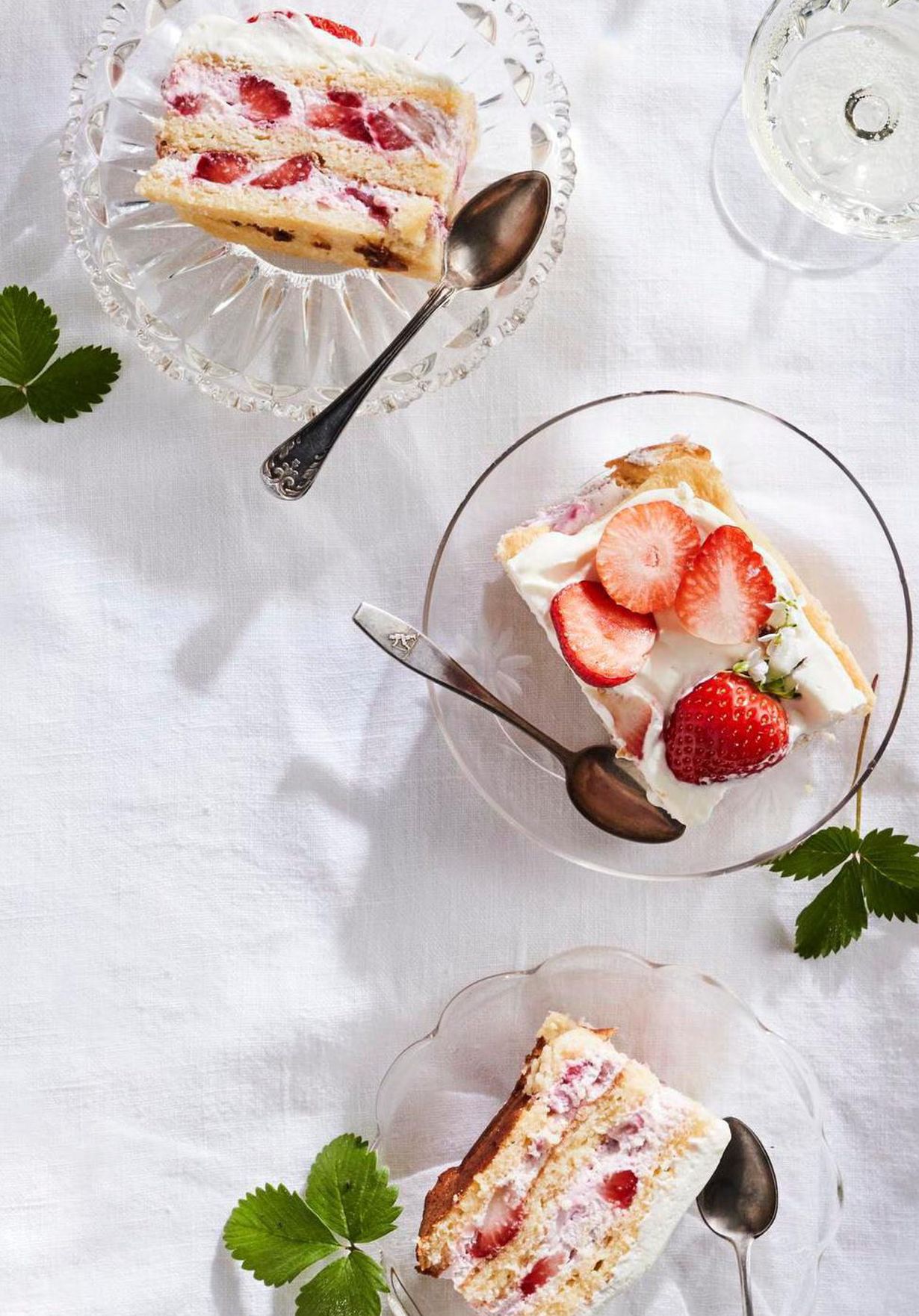 Vuokakakku on täydellinen mökki-tuliainen, sillä se kootaan suoraan vuokaan ja on siis helppo kuljettaa kylmälaukussa. Päälliset lisätään perillä.