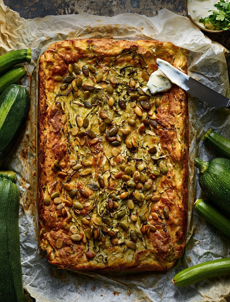 Mehevä ranskalainen kesäkurpitsapiirakka on leivän ja piirakan välimuoto. Parhaimmillaan se on vastapaistettuna ranskankerman kanssa.