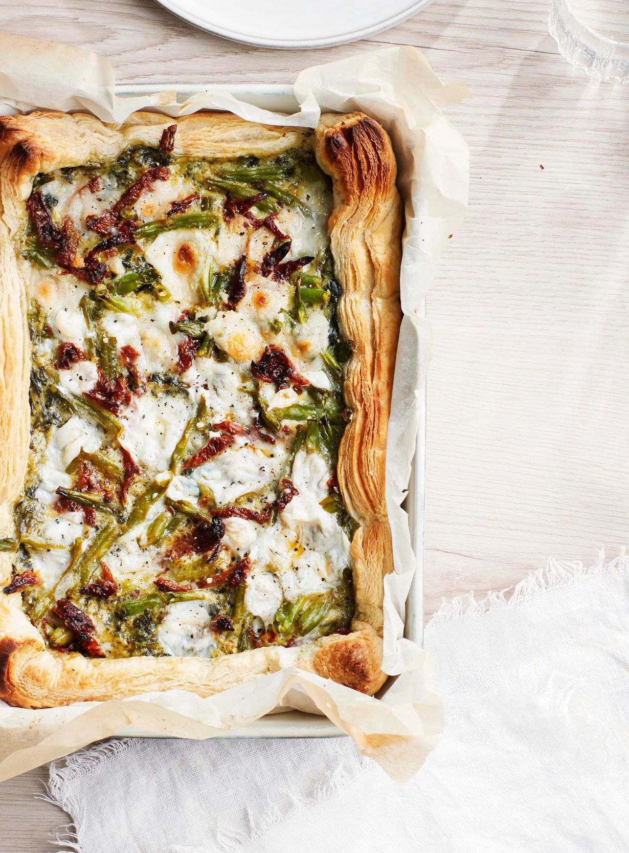 - Murenna vegaanifeta. Ripottele piirakan pinnalle pavut, feta ja aurinkokuivatut tomaatit.