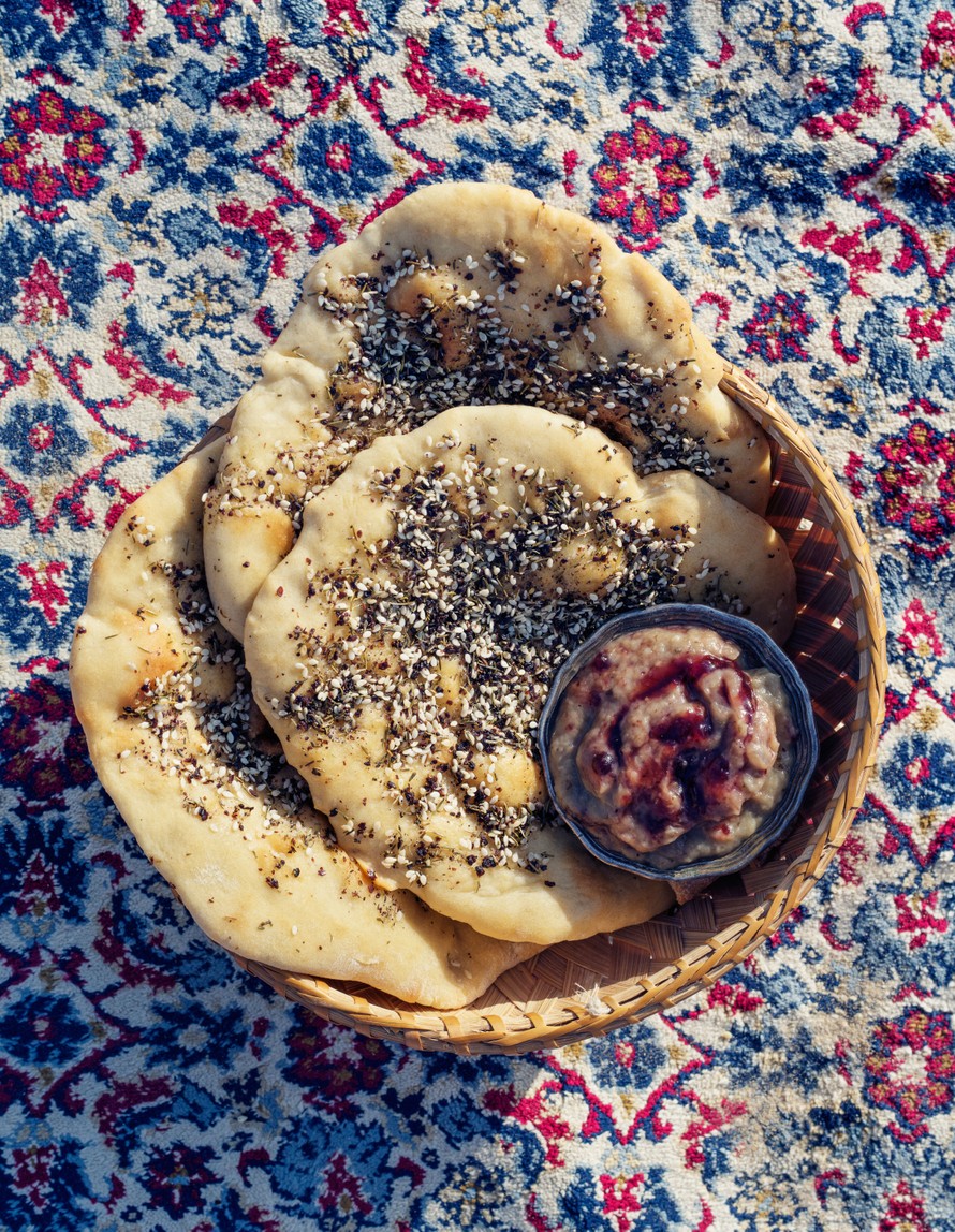 Pitamaiset manakeesh-leivät päällystetään seesaminsiemenistä ja sumakista valmistetulla zaatar-mausteseoksella. Revi, pyyhkäise tahnaan ja haukkaa! Puolukalla raikastettu munakoisotahna on leivälle täydellinen pari.