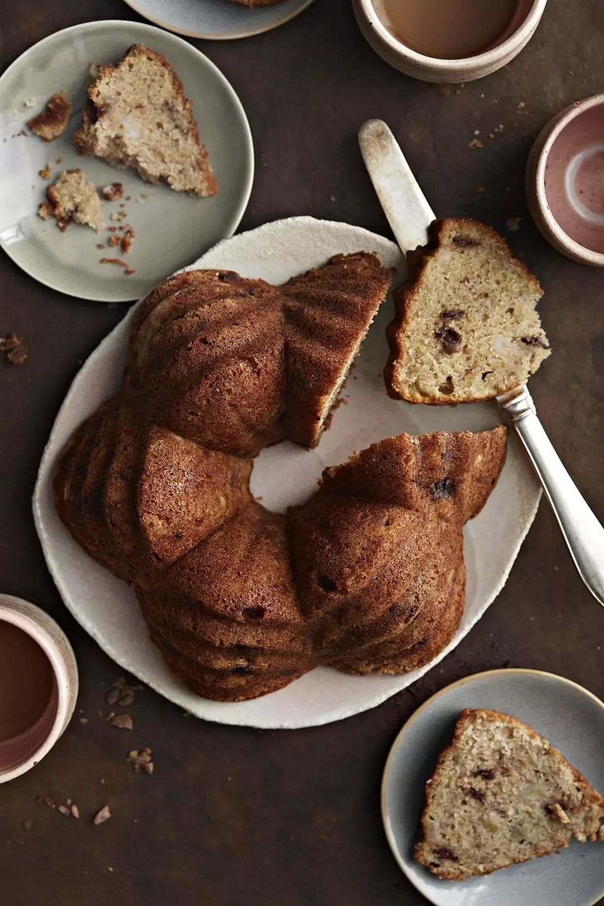 Anna kakun jäähtyä vuoassaan 15 minuuttia. Kumoa kakku, mutta jätä vuoka päälle. Kakku on parhaimmillaan, kun se saa vetäytyä yön yli seuraavaan päivään. Tarjoa kakku sellaisenaan, kermavaahdon tai jäätelön kanssa. Voit halutessasi valuttaa kakulle kinuskikastiketta tai sulatettua tummaa suklaata.