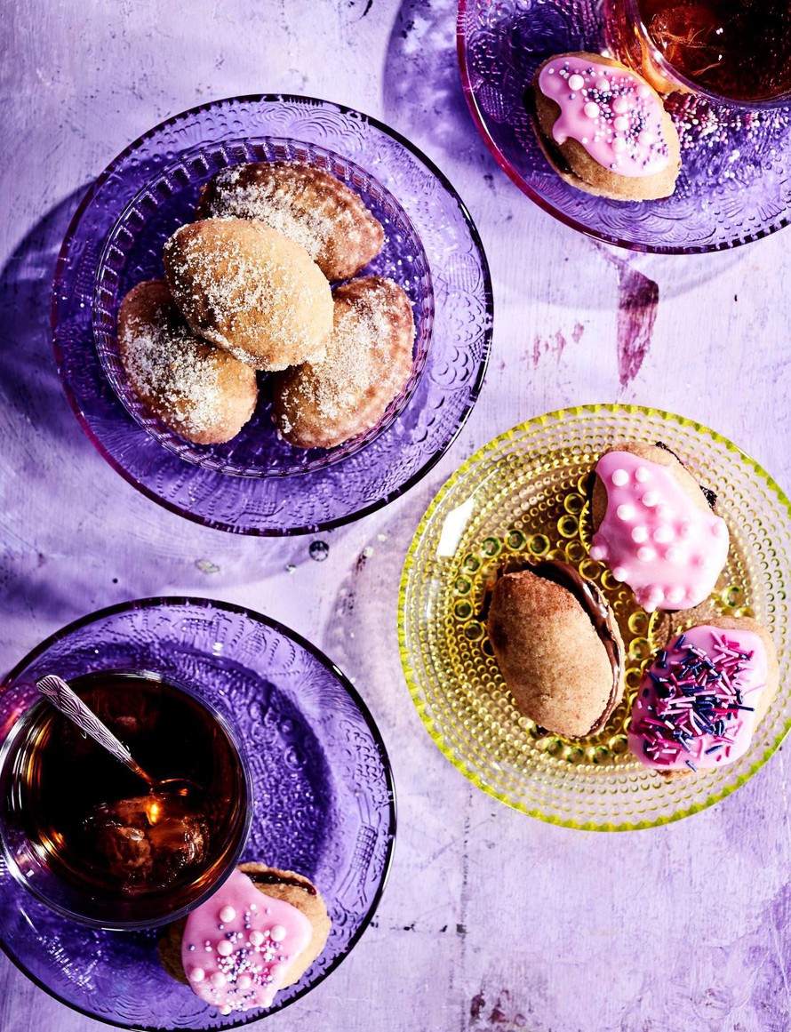 - Sipaise jäähtyneiden lusikkaleipien tasaiselle puolelle hilloa, lemoncurdia tai suklaatahnaa. Paina toinen puolikas päälle.