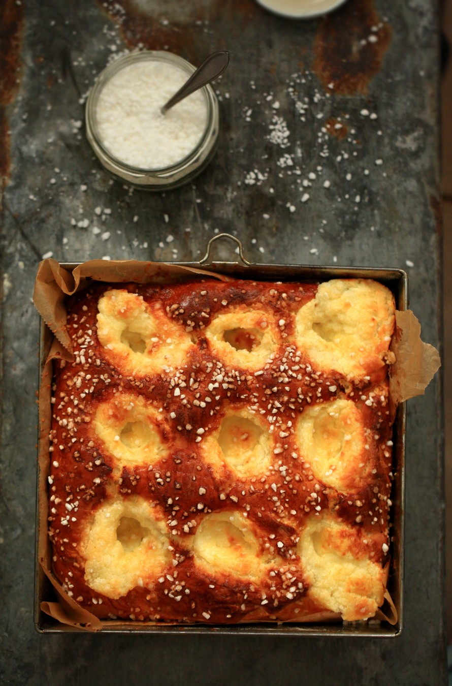 6) Paina peukalolla syvennykset kohonneeseen taikinaan ja lusikoi philadelphia