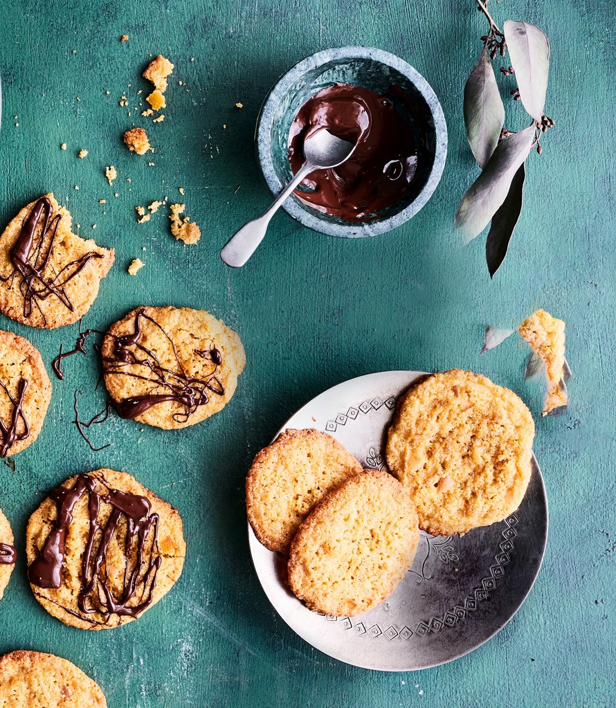Luontaisesti gluteeniton polentajauho antaa pikkuleiville rapean rakenteen. Makua tuovat hillotut appelsiininkuoripalat, inkivääri ja vanilja.