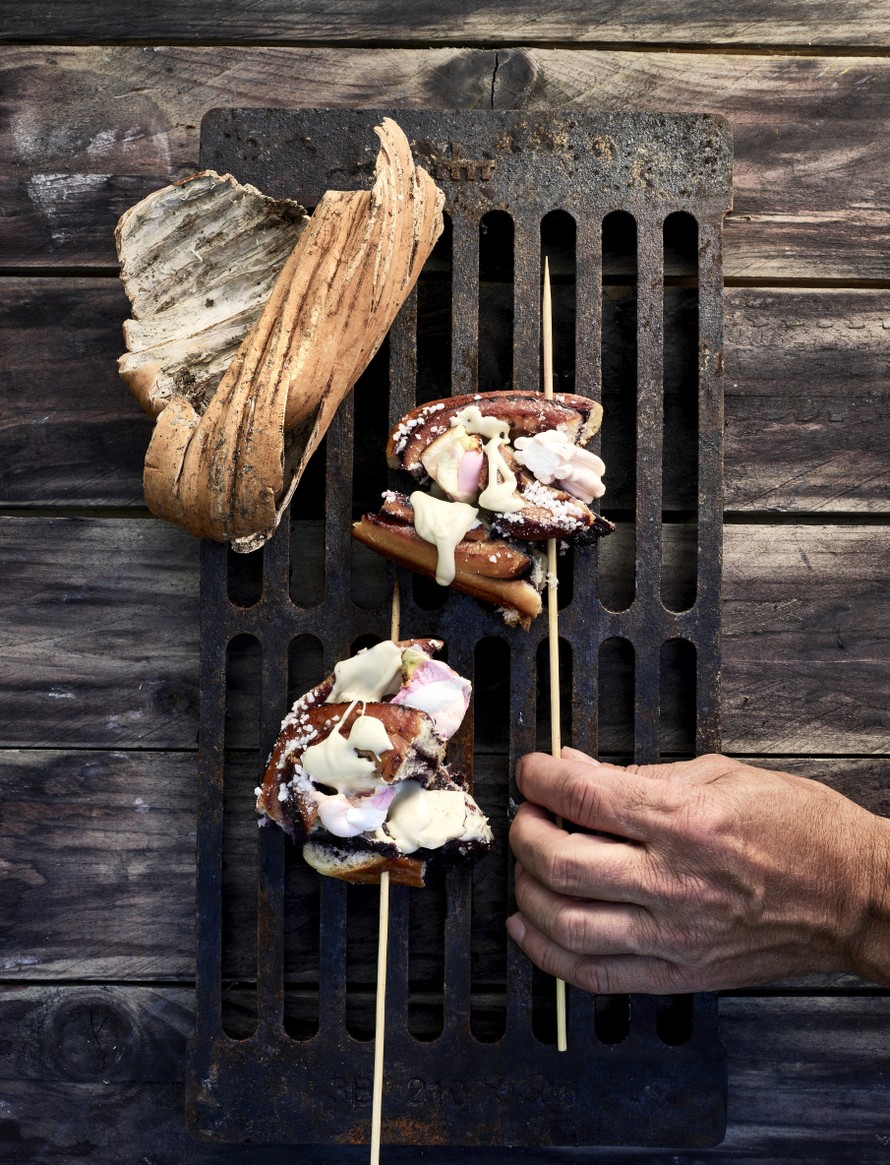 Nuotiopaikalla puolita pullat ja tikuta puolikkaat vaahtokarkkien kanssa puisiin grillitikkuihin. Anna lämmetä hiilloksen yläpuolella. Nauti nuotiokahvin kanssa.